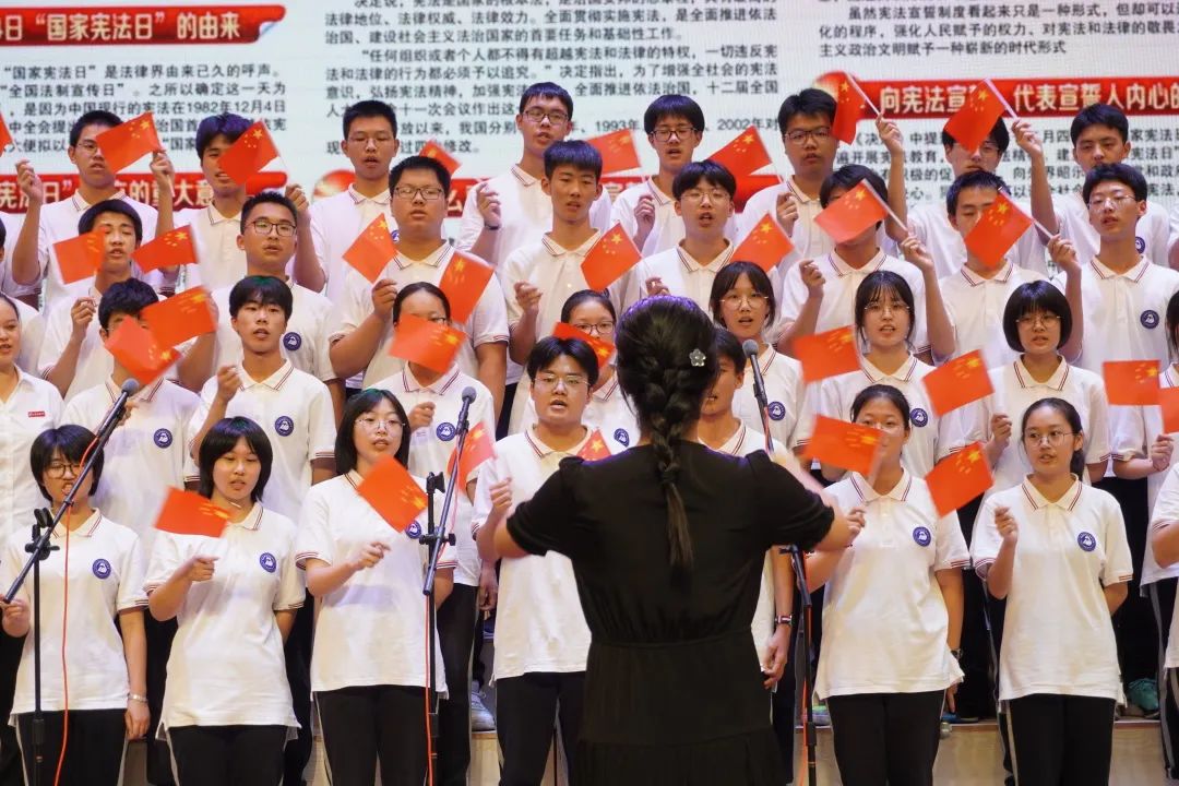 衢州第一中学通过学校大门口和教学楼前电子屏滚动播放宪法宣传片。各班开展主题班会,营造浓厚的宪法宣传校园氛围。