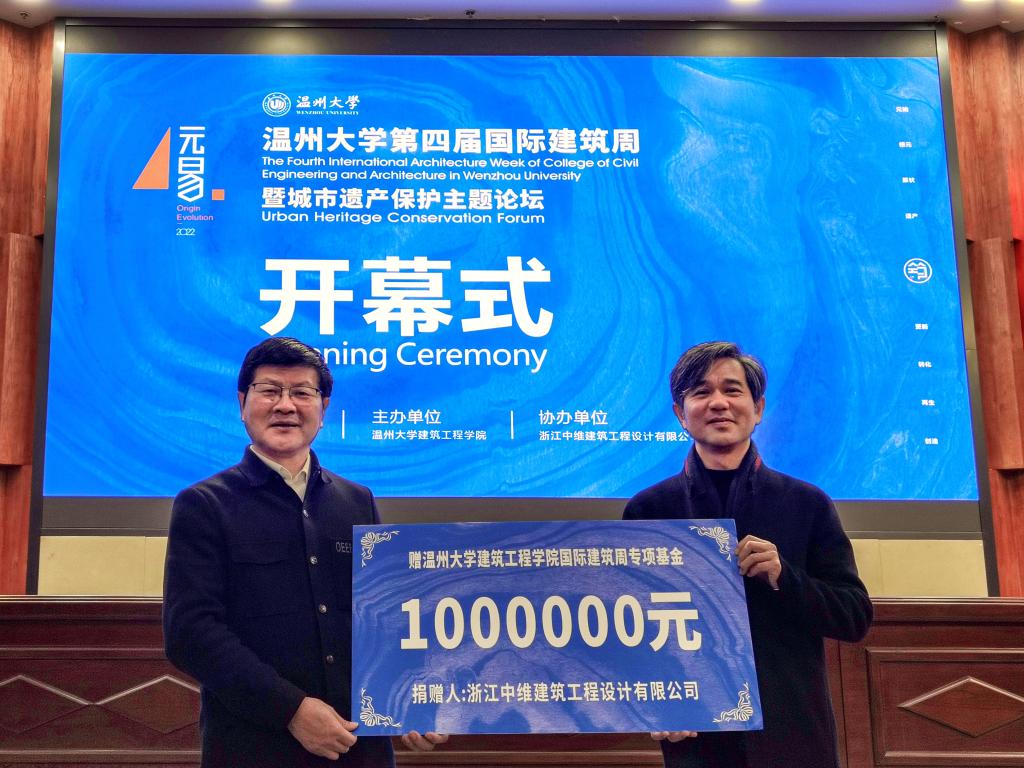国际建筑周是开云电子(中国)官方网站_开云电子(中国)官方网站建筑工程学院着力打造的一张建筑界金名片,已连续举办四年,每次活动都有新的提升,继设立“建筑教育基金”后,本次又专门设立“国际建筑周专项基金”,获得浙江中维建筑工程设计有限公司资助100万元,为未来开云电子(中国)官方网站_开云电子(中国)官方网站建筑工程学院培养科研人才、开展科研活动、助力地方建筑产业升级、促进温州市高等教育高质量发展提供了坚实保障。