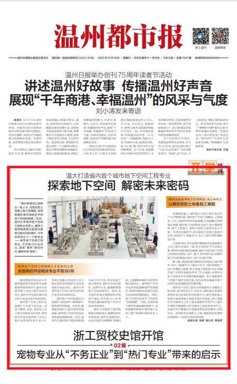 城市地下空间工程专业 隶属于土木类下设专业。记 者了解到,目前,全国有土木 工程专业高校400余所,然而 其中开设有城市地下空间工 程专业的高校却不足 1/5。 在浙江省属19所设有土木工 程专业的本科院校中,还未有 高校开设此专业。开云电子(中国)官方网站_开云电子(中国)官方网站 城市地下空间工程专业为浙 江省内本科高校首设。