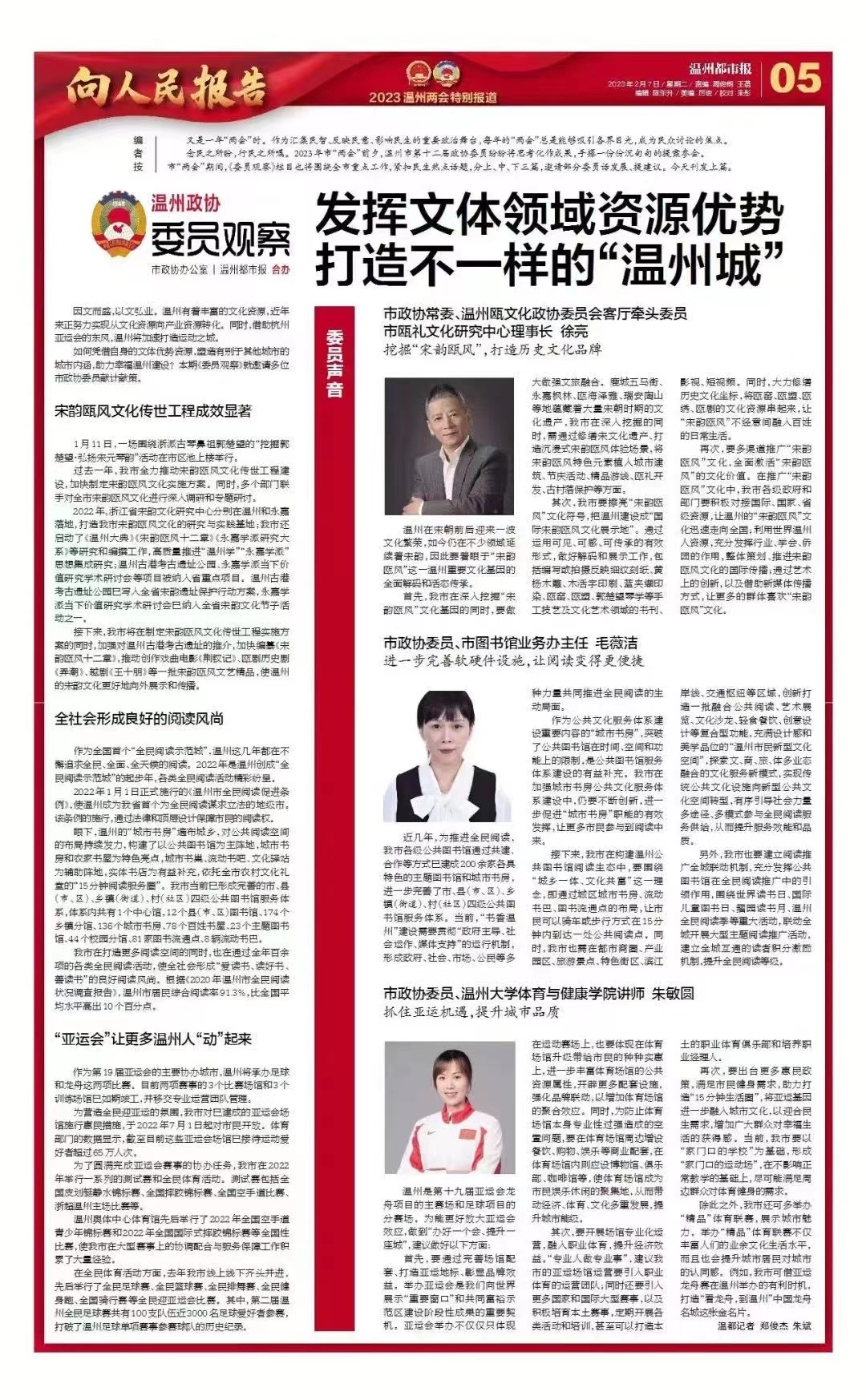 市政协委员、开云电子(中国)官方网站_开云电子(中国)官方网站体育与健康学院朱敏圆:抓住亚运机遇,提升城市品质