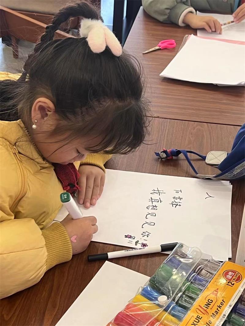 在手工环节中,通过向雷锋叔叔“写”一封信的形式,孩子们跨越时空的隧道,用着不同的方式与雷锋叔叔进行了一场心灵的对话。一些孩子在最开始有些手足无措,但是在知心姐姐们的耐心鼓励下,也有了属于自己的想法。一张张稚嫩的图画与工整的书信排列,雷锋的形象愈发立体,雷锋精神在孩子们心中也种下了一颗颗向善的种子。