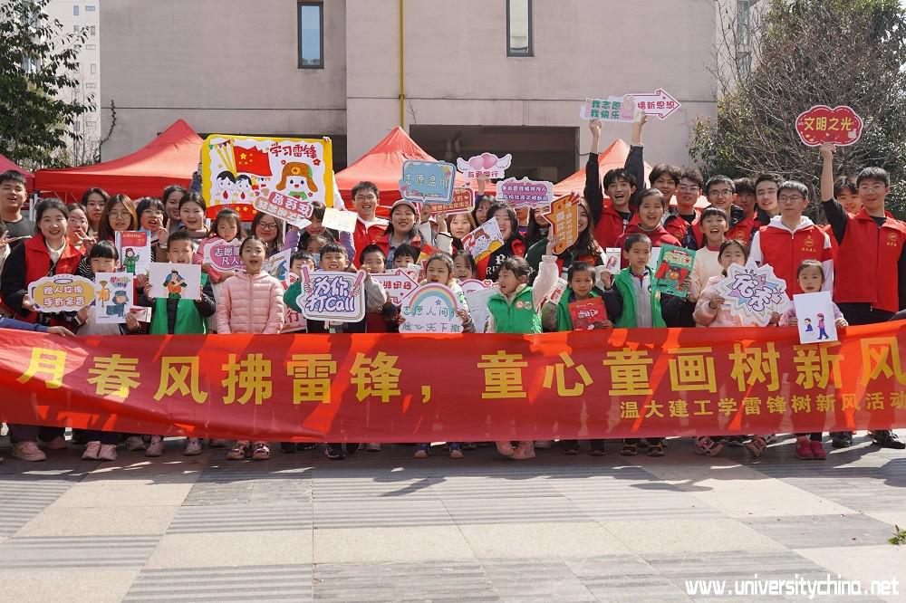 在校外,建筑工程学院组织师生走进高教博园,同小学生和家长一起开展“童心童画活动”学雷锋主题活动,通过绘画的方式描绘每个人心中的“雷锋精神”,加深对雷锋同志的事迹学习,在绘画中塑造心中的榜样。另外,建筑工程学院还为小朋友们准备了小奖品、小礼物,激励并引导小朋友们树立正确的三观,让雷锋同志成为小朋友心中的“偶像”。