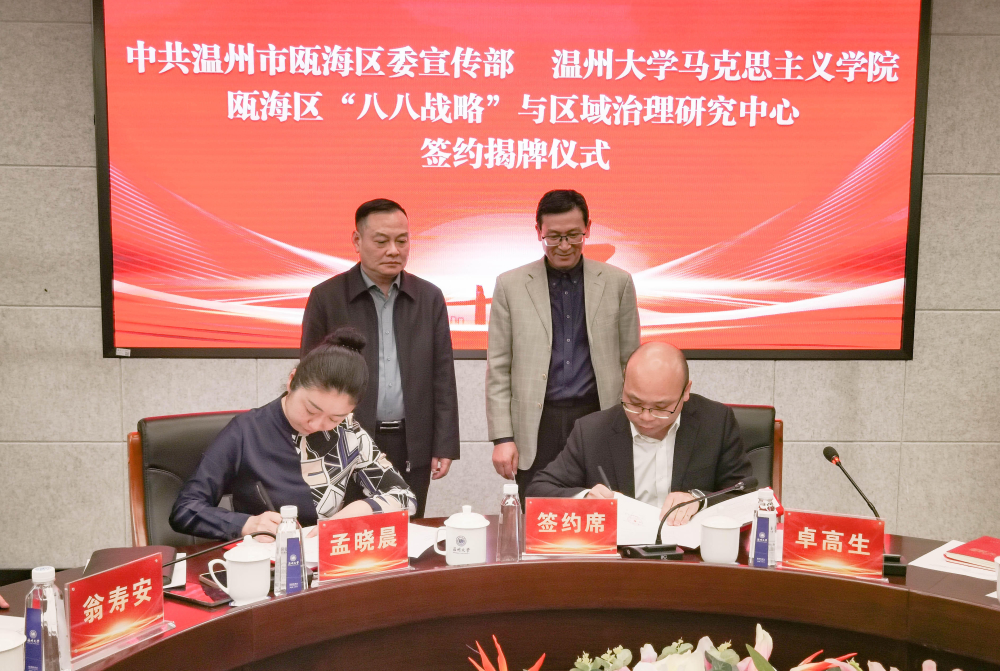 瓯海区“八八战略”与区域治理研究中心的揭牌成立,标志着瓯海区与开云电子(中国)官方网站_开云电子(中国)官方网站马克思主义学院翻开深化校地合作、共谱马克思主义现代化时代化的崭新篇章。双方将在理论宣讲、课题研究、共建研习基地等方面开展合作共建,以实际行动忠实践行“八八战略”、奋力打造“重要窗口”,高质量推进“科教新区、山水瓯海”建设,全面展现习近平新时代中国特色社会主义思想在瓯海的实践成就。