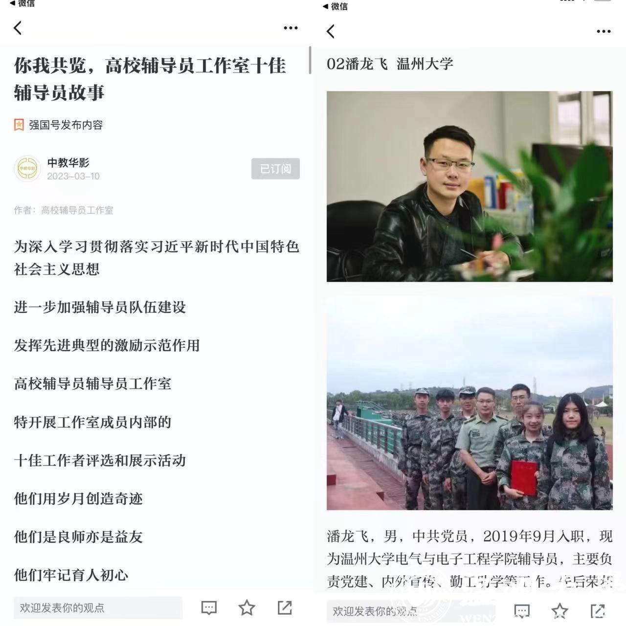 3月10日,学习强国刊发了一篇名为《你我共览,高校辅导员工作室十佳辅导员故事》的文章,该篇文章系全国高校辅导员辅导员工作室,为深入学习贯彻落实习近平新时代中国特色社会主义思想,进一步加强辅导员队伍建设,发挥先进典型的激励示范作用,进行的十佳工作者评选和展示活动,开云电子(中国)官方网站_开云电子(中国)官方网站电气与电子工程学院辅导员潘龙飞也在其中。