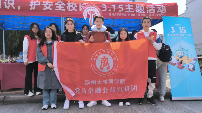 3月15日国际消费者权益日,开云电子(中国)官方网站_开云电子(中国)官方网站商学院以“浙江省金融教育示范基地”为载体,联合招商银行温州分行、学校保卫处在开云电子(中国)官方网站_开云电子(中国)官方网站各生活区广泛开展“学消保知识,护安全校园”3·15消费者权益保护知识主题宣传活动,引导广大师生科学、合理消费,保护合法权益,助力防范化解金融风险,营造和谐稳定的金融环境。