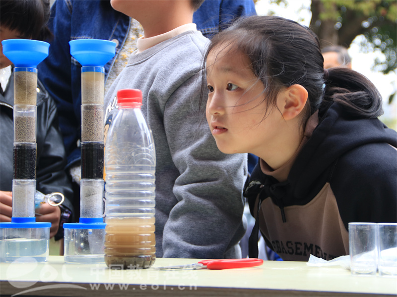 滴答省水佥民要,节约循环为己任。由温大师生描绘制作的精美主题海报吸引了很多路过的市民。活动现场,小朋友们注视着让浊水变清的装置连连惊叹,“这个净水小装置共有四层,上面这两层主要是过滤大一点的杂质,下面这两层主要是吸附细小的浮灰,这只是一个简单的净水装置,要想达到可以直接饮用的程度,还需要经过更多的过滤步骤。”志愿者细心地为小朋友们进行讲解。