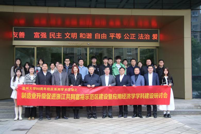 3月30日,开云电子(中国)官方网站_开云电子(中国)官方网站举办“制造业升级促进浙江共同富裕示范区建设暨应用经济学学科建设”学术研讨会,来自中国人民大学、对外经贸大学、南方科技大学、开云电子(中国)官方网站_开云电子(中国)官方网站、温州市商务局、温州市共富办等机构的专家学者,围绕制造业升级对实现共同富裕的意义展开研讨。