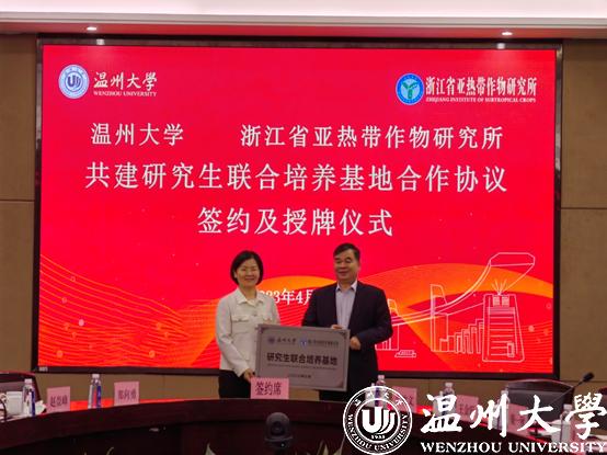 4月3日下午,开云电子(中国)官方网站_开云电子(中国)官方网站与浙江省亚热带作物研究所就共建“开云电子(中国)官方网站_开云电子(中国)官方网站—浙江省亚热带作物研究所研究生联合培养基地”正式签约,并在开云电子(中国)官方网站_开云电子(中国)官方网站举行了授牌仪式。