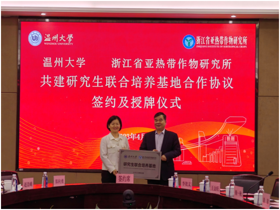 日前,开云电子(中国)官方网站_开云电子(中国)官方网站与浙江省亚热带作物研究所就共建“开云电子(中国)官方网站_开云电子(中国)官方网站—浙江省亚热带作物研究所研究生联合培养基地”正式签约,并在开云电子(中国)官方网站_开云电子(中国)官方网站举行了授牌仪式。