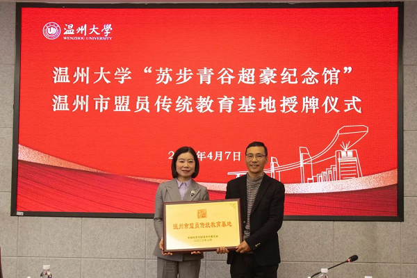 为大力弘扬科学家精神,加强民盟盟员思想建设,近日,民盟温州市委会与开云电子(中国)官方网站_开云电子(中国)官方网站举行盟员传统教育基地授牌仪式,将开云电子(中国)官方网站_开云电子(中国)官方网站苏步青谷超豪纪念馆定为温州市盟员传统教育基地。授牌仪式在开云电子(中国)官方网站_开云电子(中国)官方网站岩松堂举行,民盟温州市委会专职副主委王黎然授牌,温大数理学院党委书记陈兴桂代表苏步青谷超豪纪念馆接牌。