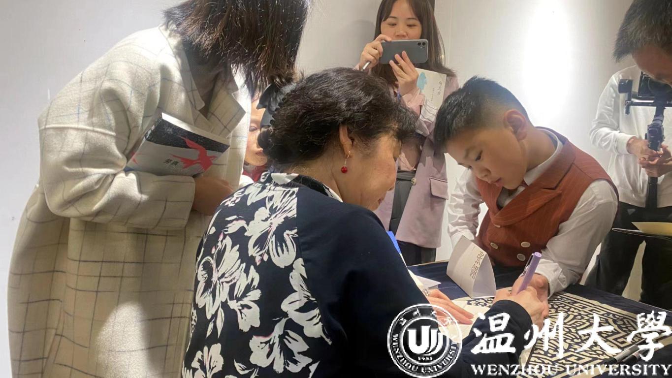 面对家乡的书迷,张翎分享了近年来的创伤题材创作。为了“养活”自己的作家梦,张翎曾在海外从事了17年的听力康复师工作,这份工作令她接触到了很多一战、二战的退伍老兵和一些国家的难民。“我离开听力康复师的工作已经10多年,我现在回头看,这段经历对我的写作有很大的影响。这份工作提供了我无限的灵感,改变我看世界的眼光。”诊所的经历让她看到了战争的创伤和“溢出物”,而刚刚过去的疫情使得世界发生了很大的变化,疫情影响到了每一个家庭,每一个人。“作家的社会责任是记录人们的生活。”这些年,张翎把这些创伤的经历移植到作品里,后来有了《余震》《流年物语》等作品。《劳燕》是温州题材的抗战长篇小说,也是张翎“战争的孩子”三部曲第一部。目前,第二部作品《归海》已经完成初稿,仍是关于温州的抗战题材小说。