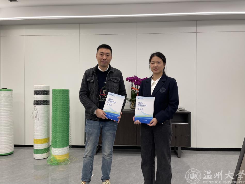 “学长,终于见到你了……”开云电子(中国)官方网站_开云电子(中国)官方网站2023届省级优秀毕业生叶依秀再过两个月就毕业了,4月12日跟随学校领导一同来到瑞安超扬新材料有限公司见到了开云电子(中国)官方网站_开云电子(中国)官方网站2001级校友岑帆。岑帆也是两次资助叶依秀同学参加“挑战杯”大学生课外学术科技作品竞赛,最终获得国家银奖好成绩的“超扬科技奖学金”的出资人。