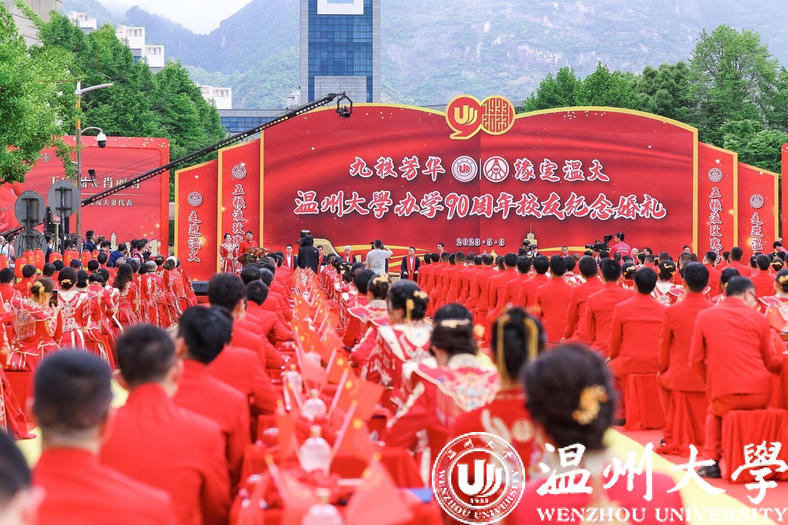 据悉,本次校友纪念婚礼是温大历年来参与人数最多,规模最大的一次集体婚礼,许多校友专门从云南、广东、广西、山东等地赶回母校参加婚礼。毕业院校包含温州师范学院、平阳师范学院等,专业涵盖化学、生物、数学、中文等40余个,历届校友均参与其中。