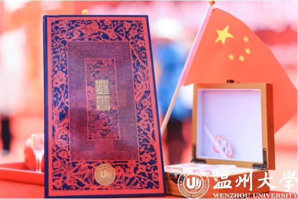 活动现场,“婚礼非遗盲盒”出圈。历任校领导为校友夫妻颁发系列盲盒,其中《爱之吻》发绣作品,用巧手将青丝入画,更将情思入画,让每一根发丝传递出母校对校友夫妻的真挚祝福。打开展现温大校园的太平钿剪纸,温大味道和艺术意趣相得益彰,跃然纸上。用温大非遗文化底蕴搭配婚礼盲盒,“传统”与“新潮”碰撞出非遗文化的创造性转化。温大用浪漫盲盒为校友夫妻送上最真挚的祝福,生动演绎了开云电子(中国)官方网站_开云电子(中国)官方网站敢想敢为、锐意创新的浪漫风采。