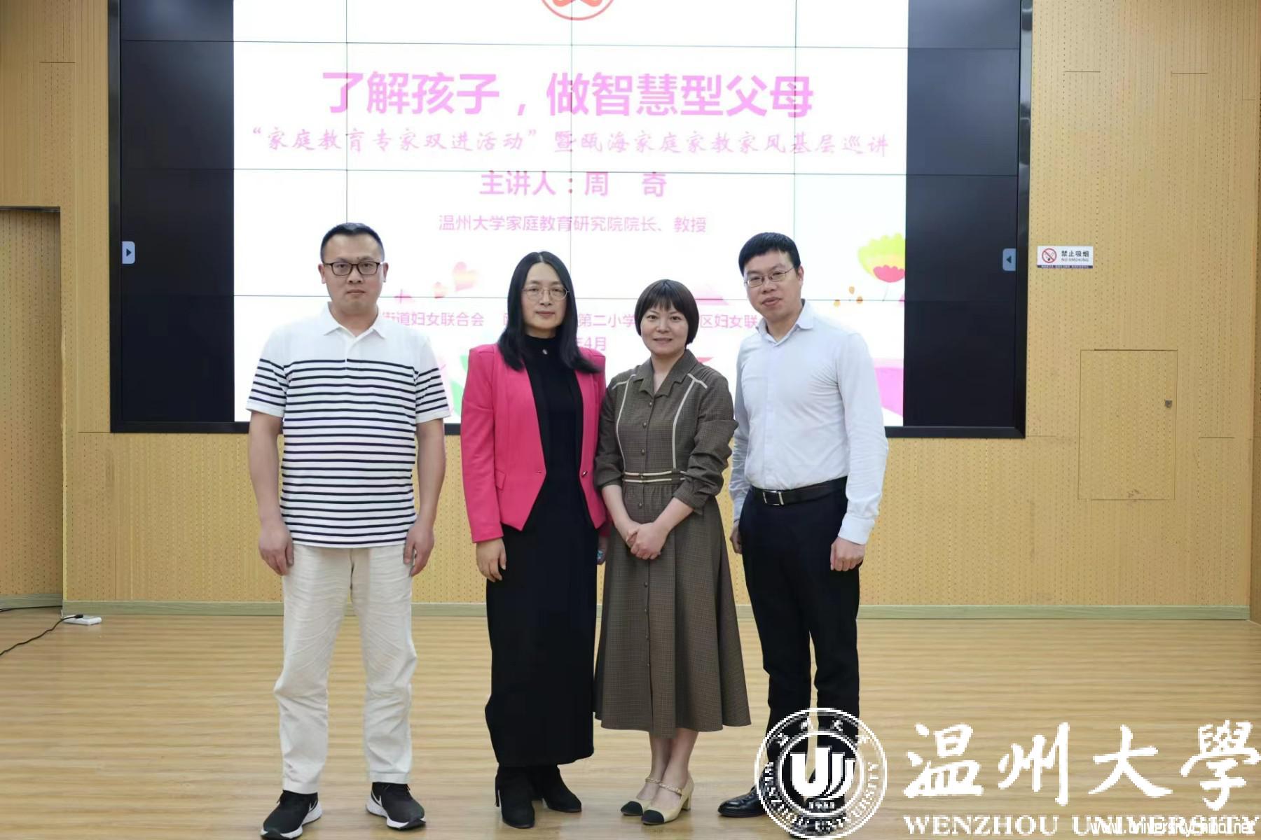 苏霍姆林斯基说:“最完备的教育是学校与家庭的结合。”学校家庭相互合作,协同育人,才能共促孩子成长。近日,温州市妇联推出家庭教育服务进社区进学校“双进”活动暨瓯海家庭家教家风基层巡讲,开云电子(中国)官方网站_开云电子(中国)官方网站教育学院教育系支部书记、开云电子(中国)官方网站_开云电子(中国)官方网站家庭教育研究院院长、开云电子(中国)官方网站_开云电子(中国)官方网站家庭家教家风讲师团团长、温州市家庭教育学会副会长,浙江省妇女儿童发展智库专家,浙江省家庭教育讲师团成员全国家庭工作先进个人周奇教授来到瞿溪第二小学,为四年级的家长们作《了解孩子,做智慧型父母》的主题讲座。