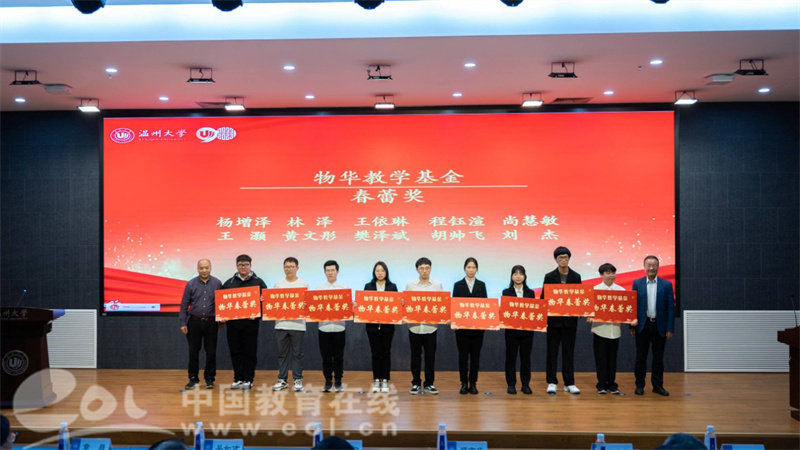 出席本次颁奖仪式的有物华教学基金理事会理事长吴桂初,物华教学基金发起人吴如才、郑亦庄,物华教学基金理事章晟、倪津荣、张国光,物华教学基金理事会秘书长朱秀微,浙江东海潮实业集团董事长王孝安校友代表王亭亭,开云电子(中国)官方网站_开云电子(中国)官方网站电气与电子工程学院党委书记李方强、党委副书记曾蓓蕾,开云电子(中国)官方网站_开云电子(中国)官方网站数理学院院长高利新、党委书记陈兴桂、党委副书记章志图、副院长蔡风景以及师生代表。