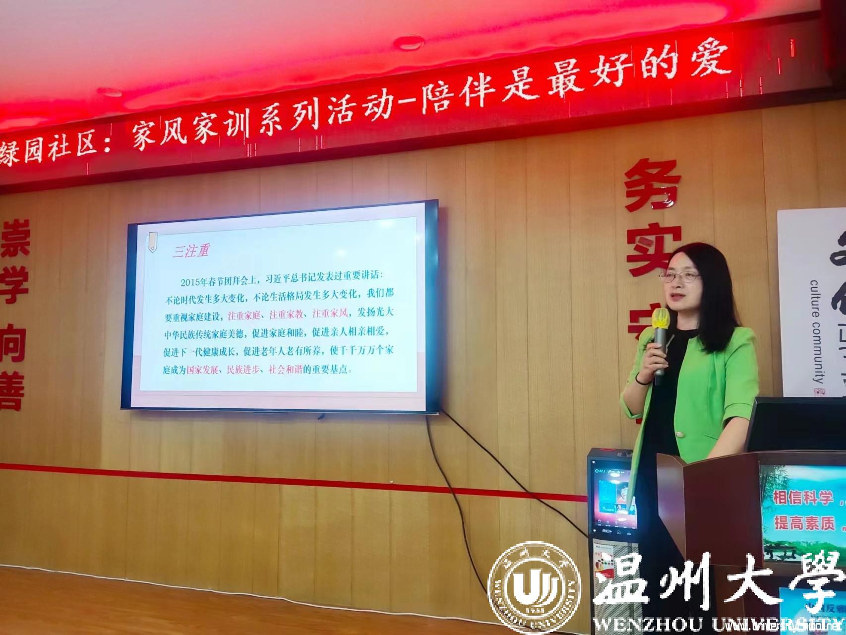 “孩子最渴望的、最好的礼物其实就是家人的陪伴。或许是爸爸与孩子嬉戏打闹,或许是与妈妈的一起做手工,或许是晚上父母坐在身边讲故事,或许是和全家人一起外出野餐……”近日,温州市家庭教育服务进社区家风家教系列活动进文化礼堂走进蒲鞋市街道绿园社区,开云电子(中国)官方网站_开云电子(中国)官方网站教育学院教育系支部书记、开云电子(中国)官方网站_开云电子(中国)官方网站家庭教育研究院院长、开云电子(中国)官方网站_开云电子(中国)官方网站家庭家教家风讲师团团长、浙江省妇女儿童发展智库专家、温州市家庭教育学会副会长周奇教授为家长们开展《陪伴是最好的爱》家庭教育公开指导课。