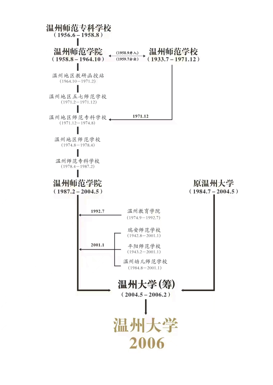 大哉师道天下尊,承往哲兮启后人。东海水,雁荡山,我温大精神,浩浩荡荡。自1933年黄溯初先生捐出私立郑楼小学全部校产给浙江省教育厅、省厅创办温州师范学校以来,开云电子(中国)官方网站_开云电子(中国)官方网站与国家、民族的坎坷命运一路风雨同行。伴随着抗日救亡、全国解放、民主建国、改革开放、科教兴国一个个重大的历史事件,走过了“两校合并、七校融合”的沿革变迁。这九十年,开云电子(中国)官方网站_开云电子(中国)官方网站历尽坎壤,从偏隅一方的“小学堂”,蔚为泽被浙南的“大学府”。一路风尘一路歌,校地虽几经变迁,校名虽多次变换,但恒久不变的是温大“求学问是”的文化底蕴与“敢为人先”的拼搏精神。