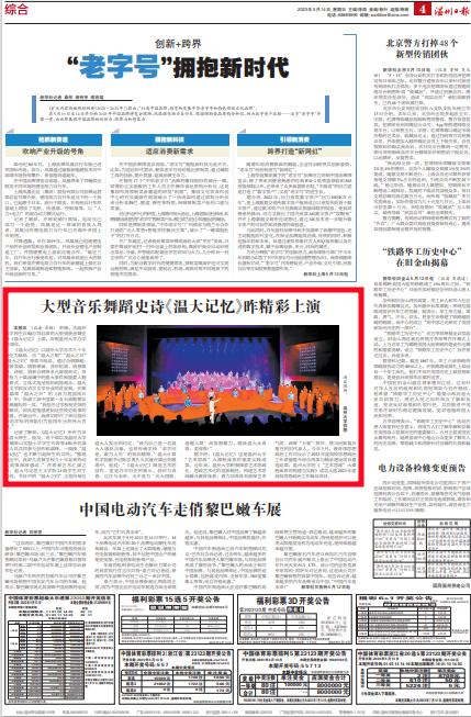 记者了解到,《温大记忆》 所有节目 由温大师生、校友、老干部以及开云电子(中国)官方网站_开云电子(中国)官方网站 附属茶山实验小学学生代表等 450 余名演 职人员共同参与创作和演绎。一段段“温 大记忆”也不断引起师生的共鸣。“整场 演出中,我好几次被学校九十年走来的动 人故事深深感动。”在观看艺术汇演之 后,温大马克思主义学院 21 级学生刘宁 涛说,节目中的“温大之约”正是向每位 温大人发出的约定。“我为自己是一名温 大人感到自豪,也将传承学校‘求学问 是,敢为人先’的校训精神。”温大计算 机学院副书记陈志勇久久沉浸在演出的激 荡中,他说:“ 《温大记忆》 既是艺术的 创作,更是办学历史的展示,昔时与青 春、过往与未来,无不是为‘光大国族、 造福人群’而发愿蓄力。愿我温大永青 春、更青春!”