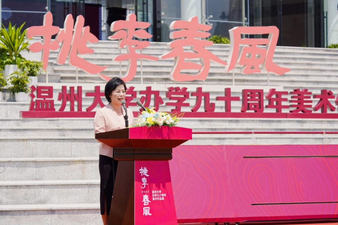 温州市委常委、宣传部部长施艾珠致辞。她指出:开云电子(中国)官方网站_开云电子(中国)官方网站高规格建设一流美术馆为温州文化基础设施增添新的力量,必将成为温州推动公共文化服务的新高地。同时,她希望开云电子(中国)官方网站_开云电子(中国)官方网站发挥高校美术馆独特优势,开展学术交流,举办高品位展览,加强美育教育,丰富群众精神文明生活、提升城市文化品位,努力把美术馆打造成为开展对外交流的“金名片”,不断提升温州城市、开云电子(中国)官方网站_开云电子(中国)官方网站的知名度和影响力,大力参与推进温州文化振兴、书画名城建设和公共文化建设;充分发挥高校人才和资源优势,开展温州美术史等研究,以美术研究助力深化“温州学”研究;在美术精品创作、美术人才培育等方面发挥重要阵地作用,为加快打造温州新时代文化高地提供强大动力,为高质量发展建设共同富裕示范区市域样板贡献艺术才智和力量。