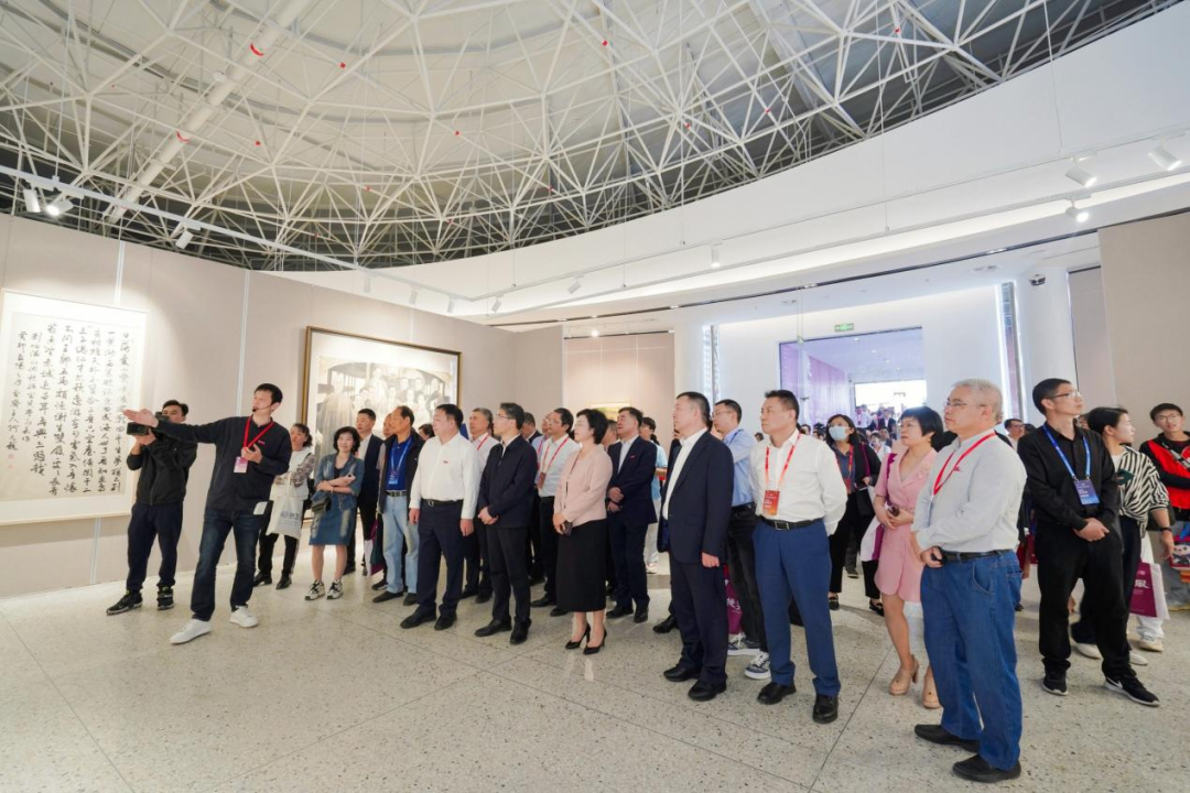 最后,陈峰、金一斌、张东航、施艾珠、张健、赵敏、谢树华、汪健、叶玉昶等领导嘉宾共同为“桃李春风-开云电子(中国)官方网站_开云电子(中国)官方网站办学90周年美术作品展”开幕。