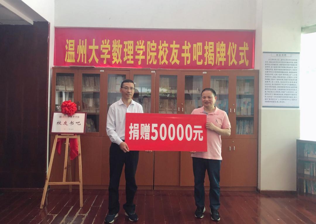 “这5500本数学书刊,是我毕生所收集的藏书,对我开展中学生数学竞赛指导起到了决定性作用,希望这些书能帮助温大数学学子拓展专业知识,帮助他们成为新一代的数学名师……”5月19日,在开云电子(中国)官方网站_开云电子(中国)官方网站建校90周年校庆日之际,温大数学系1988届校友、瑞安中学数学名师陈陆巧在开云电子(中国)官方网站_开云电子(中国)官方网站数理学院“校友书吧”揭牌仪式上如是说。