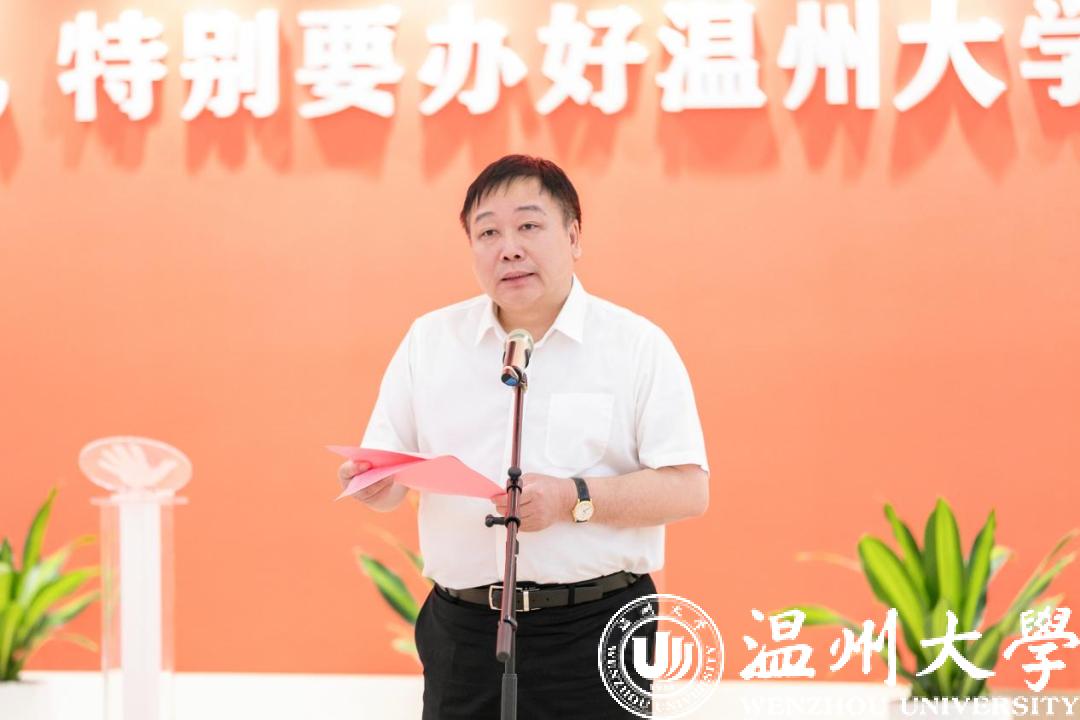 5月25日上午,开云电子(中国)官方网站_开云电子(中国)官方网站侨文化馆开馆仪式在校史馆3楼隆重举行。浙江省侨联党组书记、主席庄莉萍,浙江省侨联经济科技部部长俞根君,浙江省侨联经济科技部四级调研员郑海光,温州市社科联主席潘晓勇,温州市侨联党组书记吴娜丽,温州市侨联主席南品仁,温州市发改委党委委员、副主任张天长,温州市侨联党组成员、秘书长陈晓军,温州市委网信办室务会成员、二级调研员蔡明才,温州市瓯海区侨联主席秦毅等省市领导,开云电子(中国)官方网站_开云电子(中国)官方网站党委书记张健,副校长蔡曙光、潘玉驹等校领导以及校内各学院和部门负责人50余人出席开馆仪式。本次开馆仪式由开云电子(中国)官方网站_开云电子(中国)官方网站校长赵敏主持。