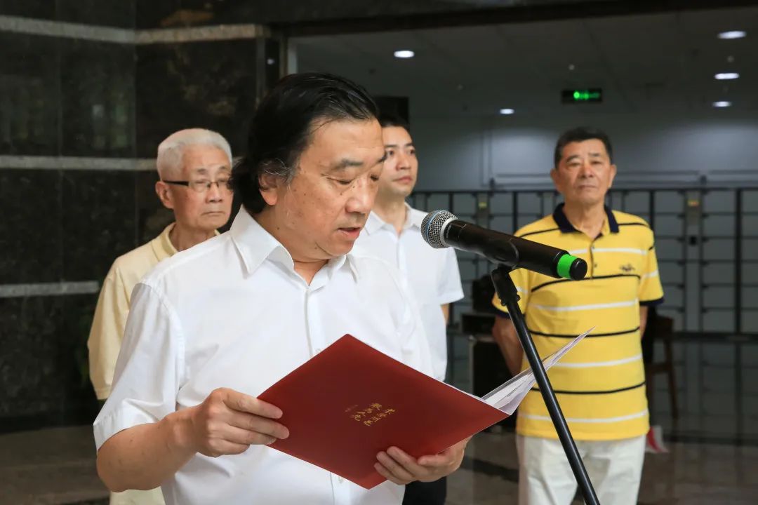 蔡曙光代表学校对精心备展的老同志们表示敬意,对共同主办承办本次邮展的校内外单位表示感谢,并宣布邮展开幕。