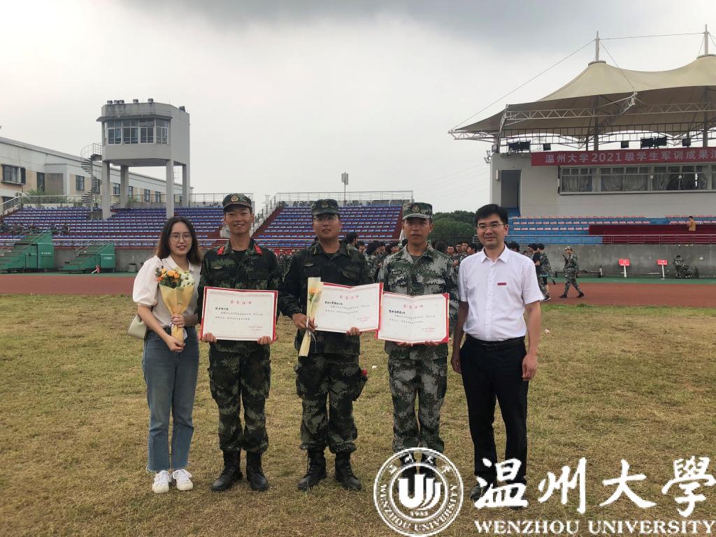 (钱源在新生军训中带领班级荣获优秀方阵奖)