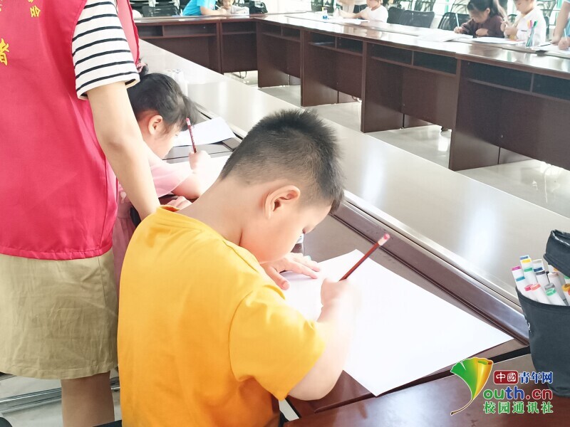 图为在凰桥村党群服务中心同学们绘制“防溺水”主题教育海报。 中国青年网通讯员 章志铖 供图
