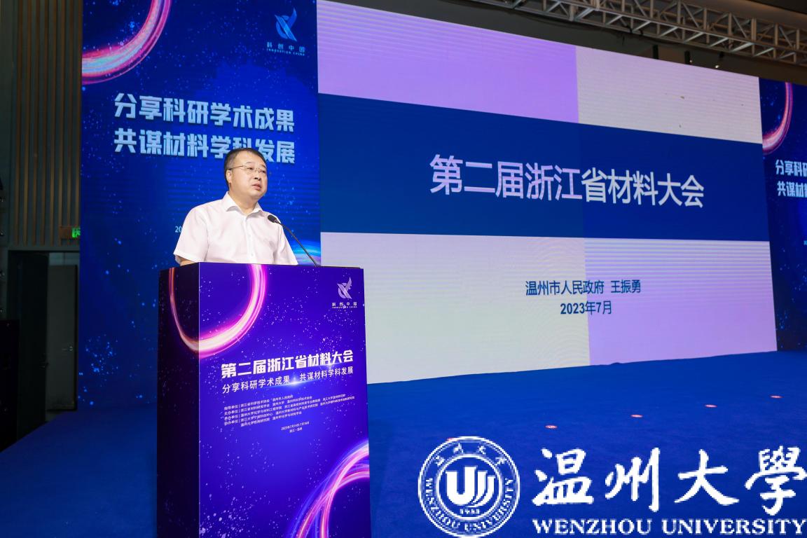“温州推动新材料产业在细分领域多点突破,助力打造‘千亿级新材料产业集群’。在座都是学界大咖,有很多的学生,希望把我的这些话传过去,希望大家来温州看一看,瞧一瞧。”