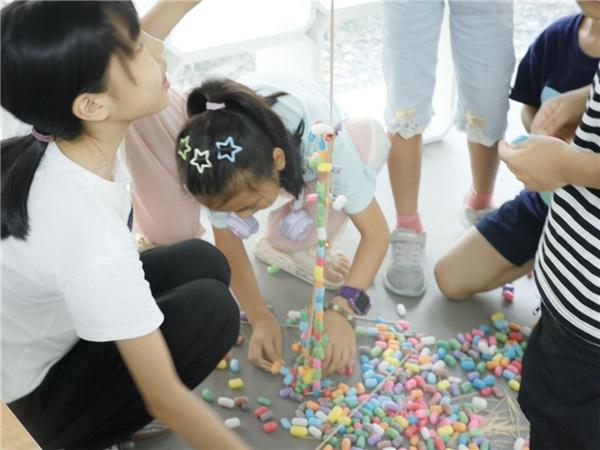 在开云电子(中国)官方网站_开云电子(中国)官方网站榕亭书屋,开云电子(中国)官方网站_开云电子(中国)官方网站暑期实践队和小朋友们一起开展了一堂“温大第一高楼”建设大比拼。活动利用牙签、木棍与彩色泡沫球搭接,进行“建设大比拼”,对比各组的搭建高度。