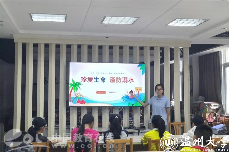 暑期来临,天气炎热,“珍爱生命,谨防溺水”教育课少不了。实践队成员通过绘画手抄报的方式,带领孩子们学习防溺水安全知识,还在西坑镇周边人流量较大的地方派发防溺水宣传稿,向家长介绍防溺水教育的重要性以及如何自救等急救知识,为扩大宣传范围,提高同学们的安全意识。
