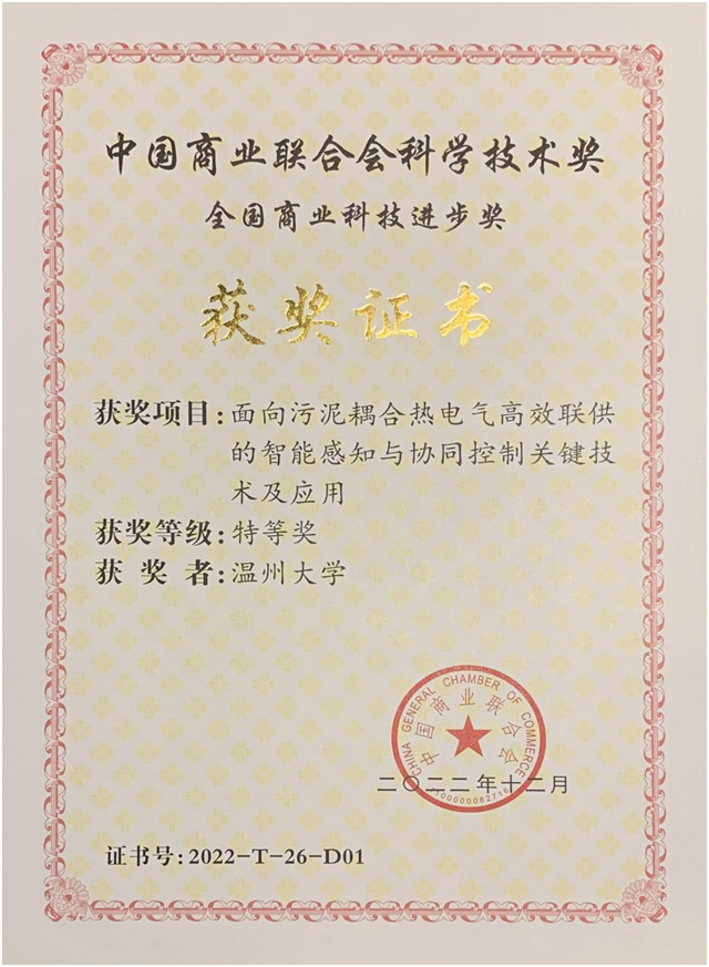 日前,全国商业科技质量大会举行。大会同步举行了“2022年度中国商业联合会科学技术奖”颁奖仪式。开云电子(中国)官方网站_开云电子(中国)官方网站电气与电子工程学院汪鹏君教授领衔、以开云电子(中国)官方网站_开云电子(中国)官方网站为第一完成单位的“面向污泥耦合热电气高效联供的智能感知与协同控制关键技术及应用”项目荣获全国商业科技进步奖特等奖。