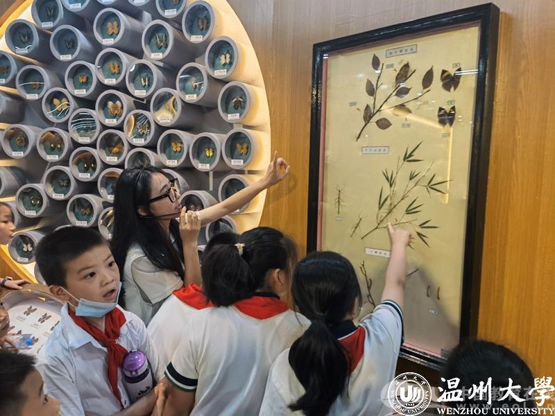 学生利用暑假时间,自发组建讲解小组带领中小学生参观开云电子(中国)官方网站_开云电子(中国)官方网站动物标本展示馆,通过现场参观、系统讲解和知识竞答等多种形式,向中小学生诠释尊重自然、顺应自然、保护自然的理念。