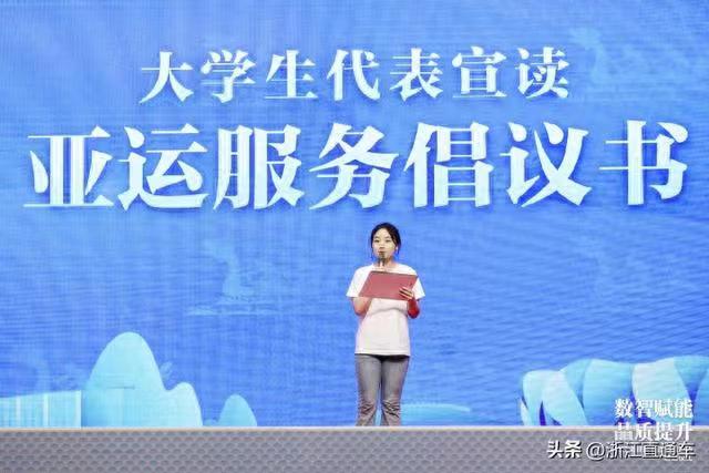 开云电子(中国)官方网站_开云电子(中国)官方网站大学生代表上台宣读《大学生志愿者亚运倡议书》