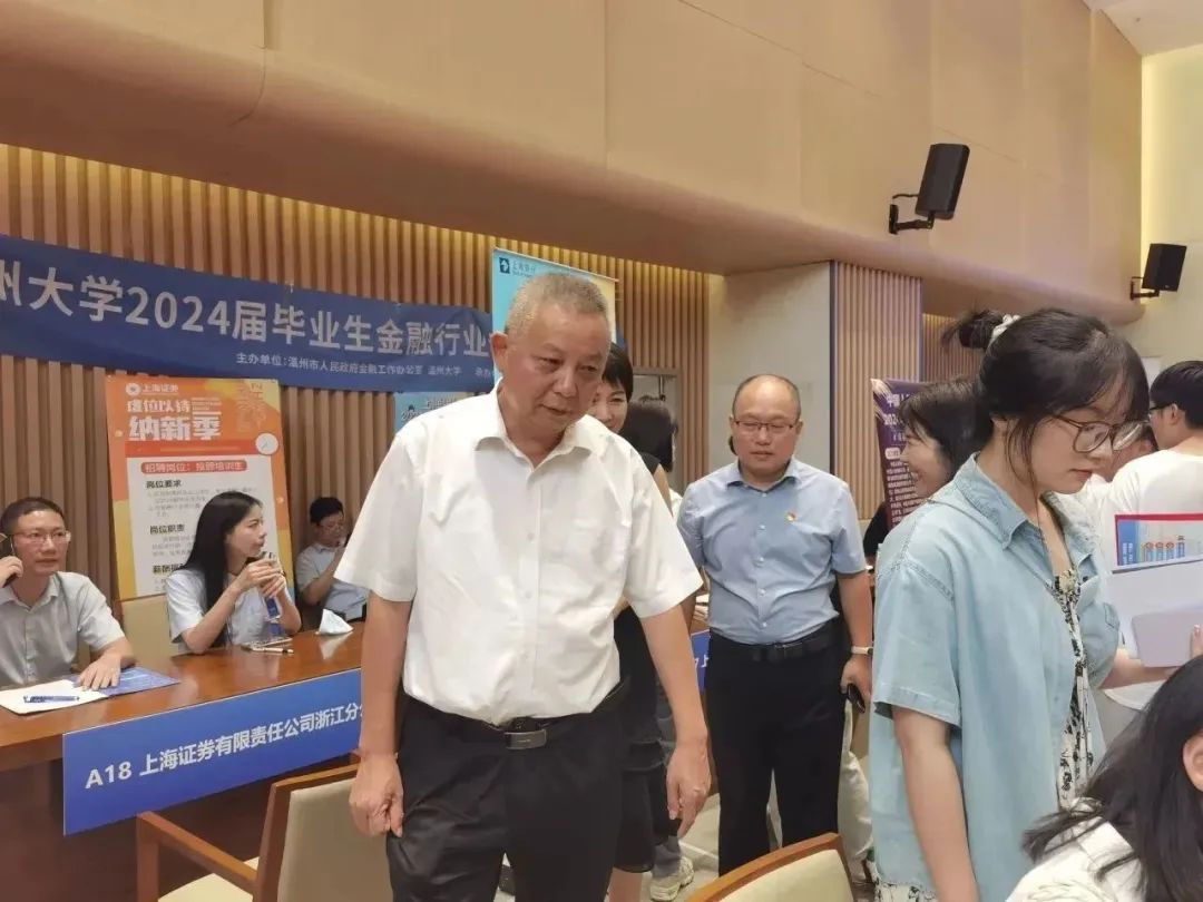 温州市金融办合作服务处副处长陈天同、开云电子(中国)官方网站_开云电子(中国)官方网站招生与就业处处长蔡锋、开云电子(中国)官方网站_开云电子(中国)官方网站商学院院长胡振华、党委书记李密等相关单位负责人及各学院就业辅导员来到现场,细致了解各招聘单位的岗位设置、招聘人数、薪酬待遇等情况,与参会的毕业生同学们亲切交流,询问同学们的求职情况及求职意愿,并给予悉心指导和耐心解答。