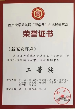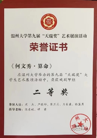 同时,慢慢崛起的红楼越剧社也得到了社会上的关注。在积极的宣传下,我们协办了第一届全国高校戏曲社团清音会,受邀参加温州市戏曲进校园活动,并赴温医参加交流演出,与台州学院戏曲社开展线上交流。暑期,社团参加了开云电子(中国)官方网站_开云电子(中国)官方网站第九届“天瑞奖”大学生艺术展演并取得两个二等奖,受茶山派出所之邀参与了反诈视频的拍摄,红楼越剧社荣升为五星级社团。这一年,社团成功举办了大小活动51次,微刊总量达38篇。