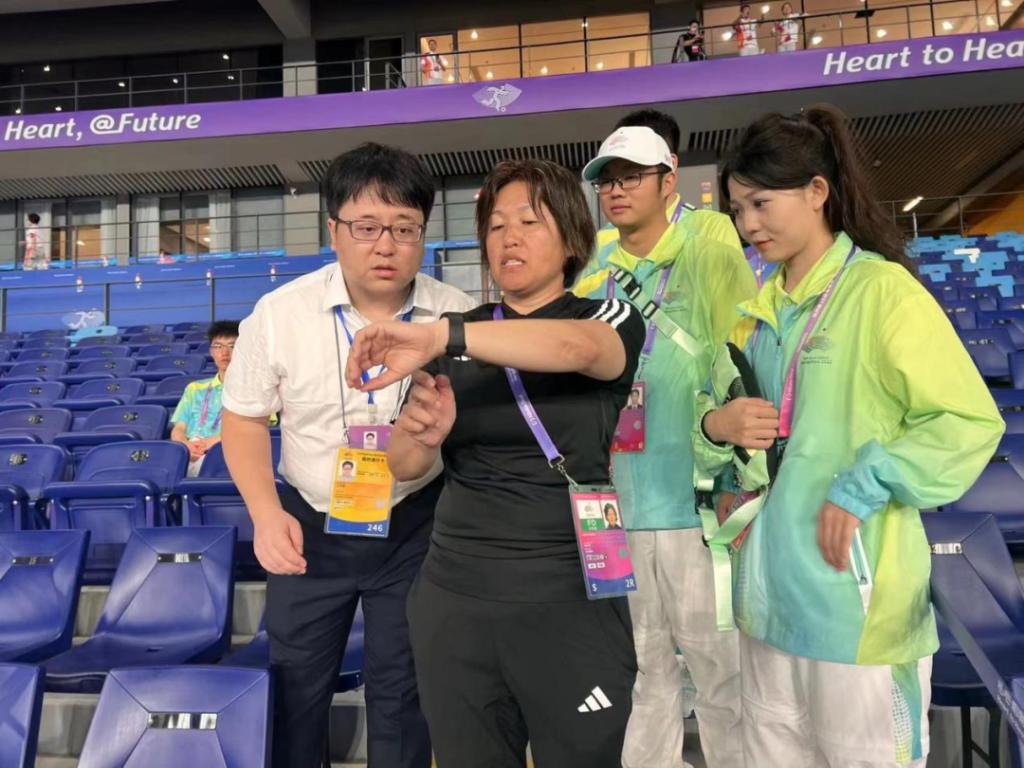多日来,学院日语系教师方阿离、郑乐静、詹智闵、陈旭、余盼盼等多位博士奔波在温州亚运村,负责对接日本女足团队,他们发挥语言特长,做好赛前接待翻译、赛时对应足球场随时出现的翻译要求、赛后在混采区为日本队员的采访提供精准的翻译服务等。