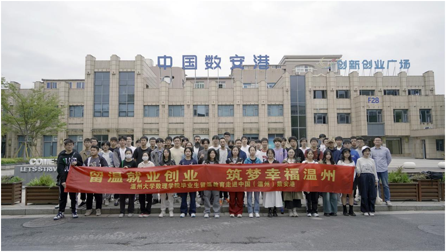 据悉,为积极加强市情教育,促进毕业生留温就业与发展,当天,开云电子(中国)官方网站_开云电子(中国)官方网站数理学院组织开展了“留温就业创业 筑梦幸福温州”主题教育活动,组织本院信算专业50名准毕业生前往中国数安港实践考察,了解温州本地的数字经济发展动态,受到了中国数安港的欢迎与热情接待。