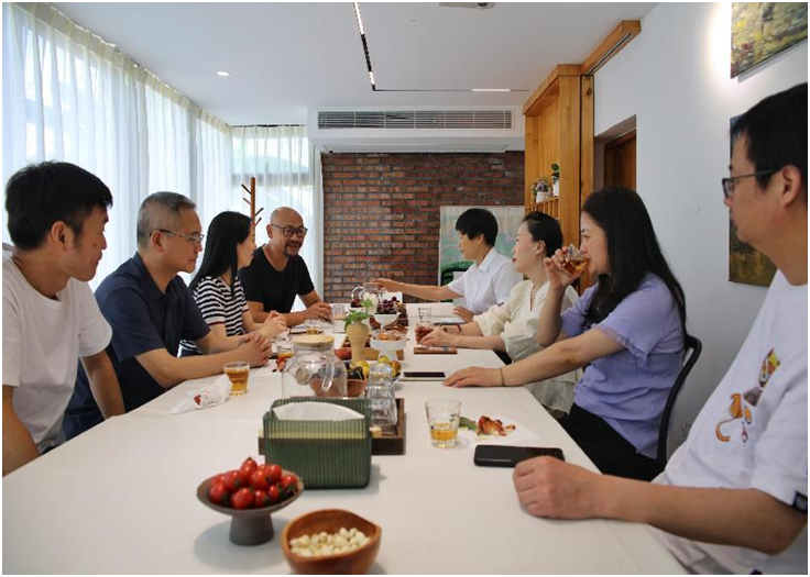 村委和鸣竹学堂堂长向支部成员详细地介绍了鸣山村的人口结构、村民家庭教育观念、文化空间建设、文娱活动开展等现状,并提及全方位、立体化、多渠道提升村民文化素质的重要性,希望有更多的外来资源输入,有更新的文化活动形式,开阔村民的阅读视野,丰富大众的精神生活。于此,大家就“阅读推广基地共建”项目展开了深入的交流与探讨。双方对“大阅读”和“全民阅读”理念有着深刻的共识,在组织、策划、推广“教育、阅读、培训、沙龙、团建、展览”等多元人文研学活动合作方面也达成了一致的见解。