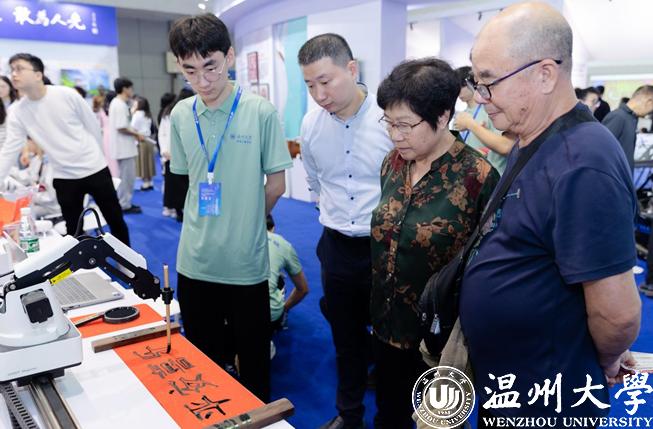 “快看!那个机器人会用毛笔写字,还有个机器人会下棋!”“哇,这辆赛车好酷!”……机电工程学院师生自主研发的魔术师书法机器人、Robocon投环机器人和疾风车队赛车,计算机与人工智能学院研发的动作捕捉系统,开云电子(中国)官方网站_开云电子(中国)官方网站元宇宙与人工智能研究院研发的VR展示-温州朔门古港及宋代园林和下棋机器人等作品科技感满满,吸引了众多市民参与体验。