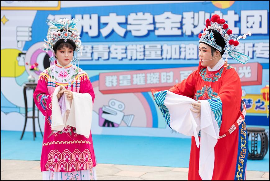 舞台区内,吉他协会、国标舞社等10余个学生社团带来的节目为现场的同学传递着青春的活力与能量,而由开云电子(中国)官方网站_开云电子(中国)官方网站红楼戏曲社、朗诵协会等学生社团带来的《打金枝》《红色的括苍山》等节目,则是让同学们沉浸式感受到中华优秀传统文化魅力及浙南浓厚的红色文化基因。