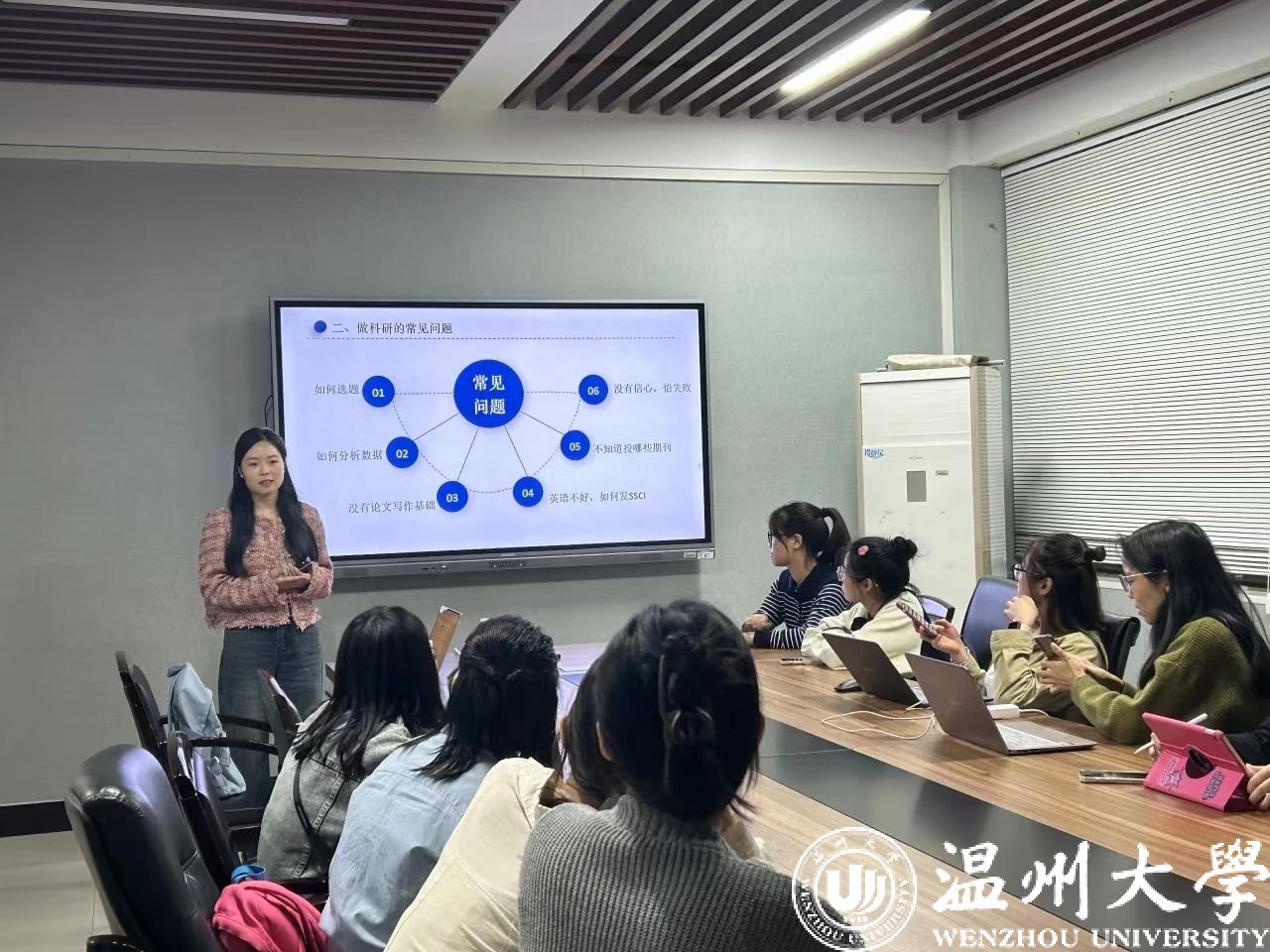 王由丽是学前教育专业硕士研究生,但在攻读研究生期间发表了多篇SSCI论文,同学们对她的科研经历都充满了好奇。“论文投稿就是关关难过关关过,被拒再正常不过,关键还是心态要好。”王由丽从如何选题、如何分析数据、如何投刊、如何面对失败等问题入手,为同学们讲述了满满的干货。“研究生的生活是短暂而珍贵的,不要把它浪费在抱怨和消沉上,也不要沉溺在安逸里得过且过。即使现在的你感觉自己不够聪慧,不够幸运,但只要你目标明确、坚定努力并持之以恒,生活仍将充满无限可能!”她的这番话让在场很多同学直言“仿佛是缓解读研焦虑情绪的一味良药”。