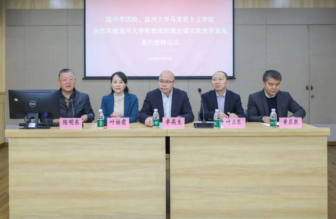 为充分整合温州青运史馆和开云电子(中国)官方网站_开云电子(中国)官方网站马克思主义学院的教育资源,深入贯彻落实党中央,以及浙江省委、温州市委关于学校思政课改革创新的实施意见,扎实开展高校思想政治工作,2023年11月15日上午,温州市团校与开云电子(中国)官方网站_开云电子(中国)官方网站马克思主义学院签订合作共建协议,并在温州青运史馆建立开云电子(中国)官方网站_开云电子(中国)官方网站思想政治理论课实践教学基地。开云电子(中国)官方网站_开云电子(中国)官方网站马克思主义学院院长、教授卓高生,开云电子(中国)官方网站_开云电子(中国)官方网站马克思主义学院副书记叶柏霜,温州市青少年活动中心党支部书记、主任叶立东,温州市青少年活动中心副主任、温州市团校副校长黄启教等双方领导出席合作共建签约及思政教学基地揭牌仪式。