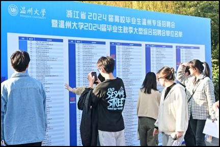 拿着简历的求职学子或是在展位前与用人单位的负责人交流,或是三三两两聚在一起讨论求职情况,也有低年级的学生在现场观摩、提前了解就业前景。机电学院河南籍的大四应届生周同学在接受采访时表示:“我很想留在浙江,这次招聘会有很多江浙沪的企业,很好地满足了我的就业城市意向,今天聊的几家企业双方感觉都不错,收获很大”。数理学院温籍学子陈同学在市人社局留温咨询展位前表示:“一直听说市里的人才政策力度很大,但是没有仔细核对过自己的条件。今天通过现场咨询,人社局的老师帮我估算了下留在温州工作可以申领的补贴额度。这个政策咨询点对于扩大留温影响力以及让毕业生及时了解福利好处太有用了,让我对于留温就业、置业更有信心。”