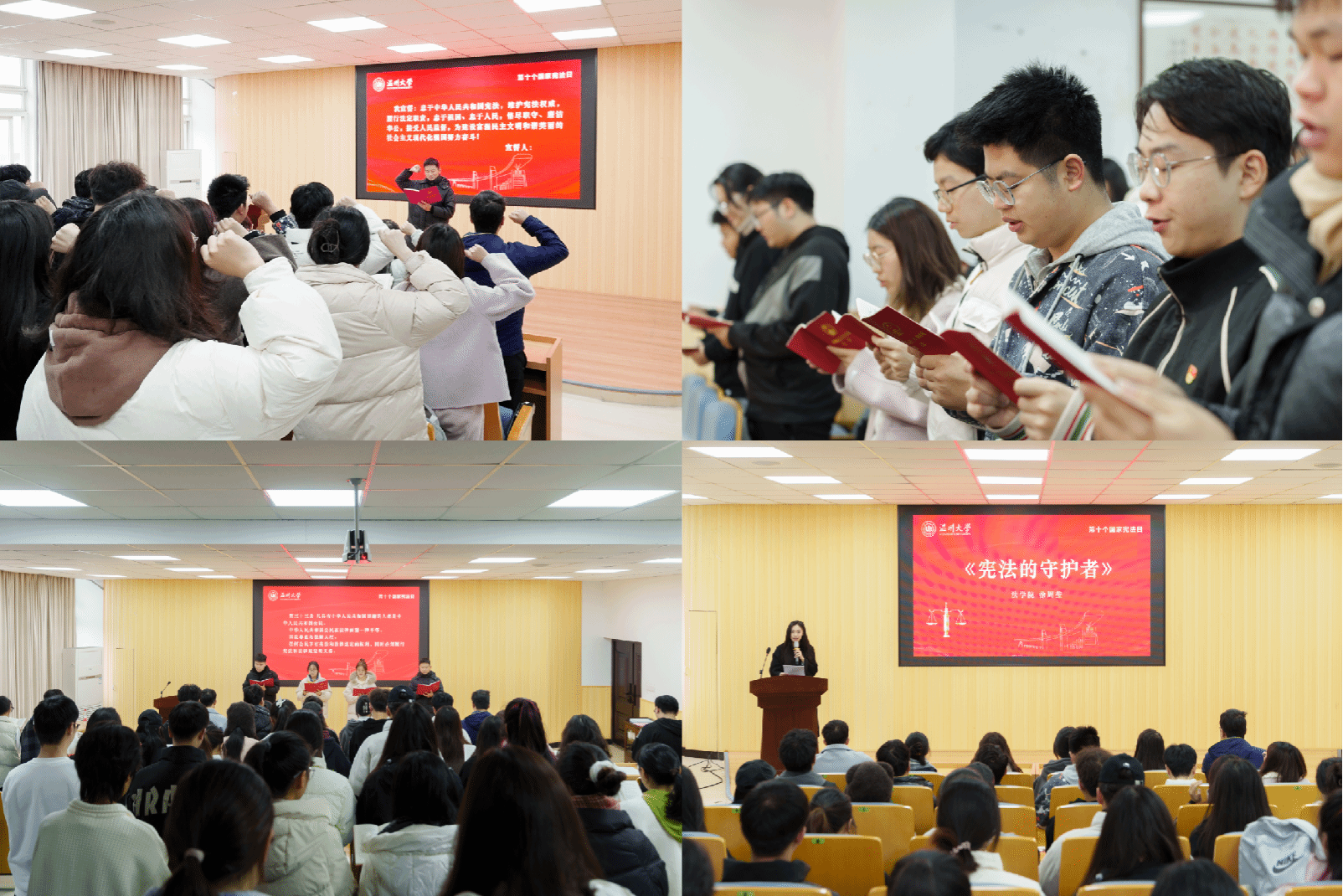 此外,开云电子(中国)官方网站_开云电子(中国)官方网站还陆续开展了“习近平法治思想”微宣讲展播、读书分享会、主题党日和团日活动、法律书籍漂流、同步观看2023年国家宪法日教育系统“宪法晨读”等活动。从干货满满的宣讲视频到思维碰撞的宪法知识竞赛,从社区、校园普法到国旗下的庄严宣誓,内容丰富、形式多元,为师生带来丰富的宪法宣传活动体验,将宪法宣传教育、习近平法治思想紧密结合,引领温大师生凝聚宪法共识,扎实提高法治宣传教育实效,为青春保驾护航!