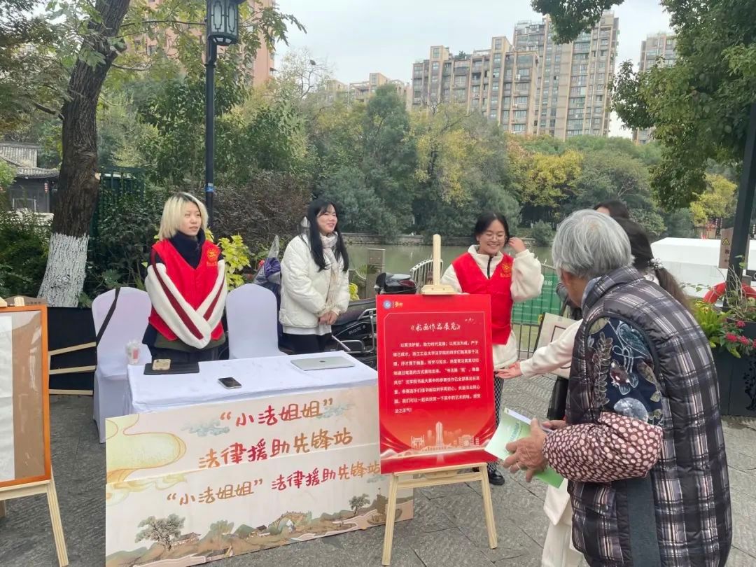 11月30日,在杭州上塘古运河景区,浙江工业大学法学院“小法姐姐”法律援助志愿者接待站的学生们为市民朋友提供法律援助。