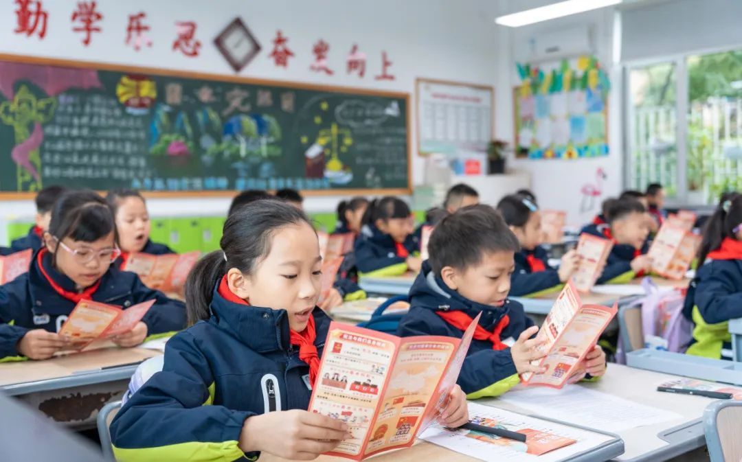 台州市椒江区云健小学通过开展中队里读宪法、国旗下读宪法、板报中话宪法、视频上知宪法等活动,组织学生学习相关宪法条目,弘扬宪法精神。