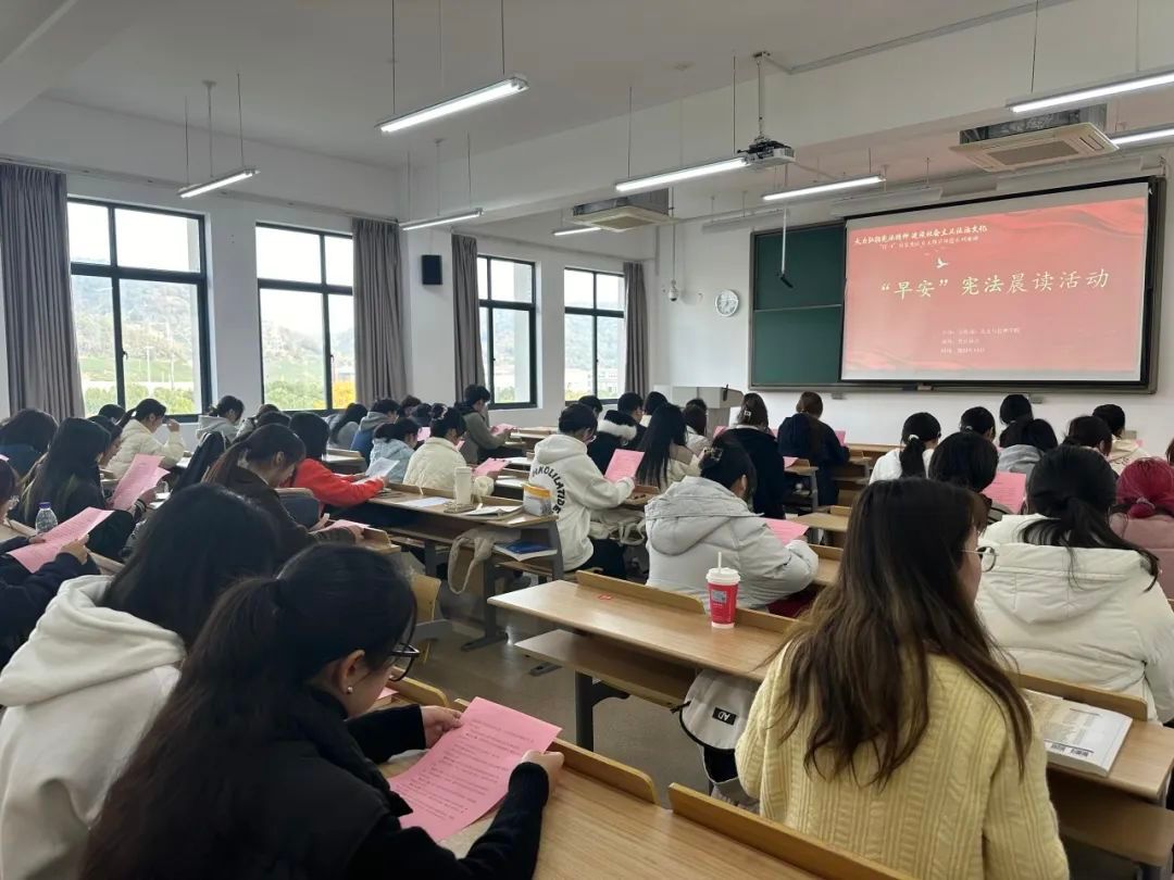 金华职业技术学院通过组织一场宪法学习主题班会、完成一次宪法知识线上答题、开展一次宪法晨读活动等“三个一”项目,保障宪法学习全覆盖,使尊崇宪法、遵守宪法和法律成为师生共识。